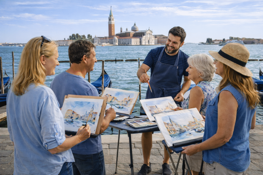 Crea il tuo dipinto di Venezia seguito da un famoso artista! Imparerai a usare un occhio attento per dipingere l’anima di Venezia!